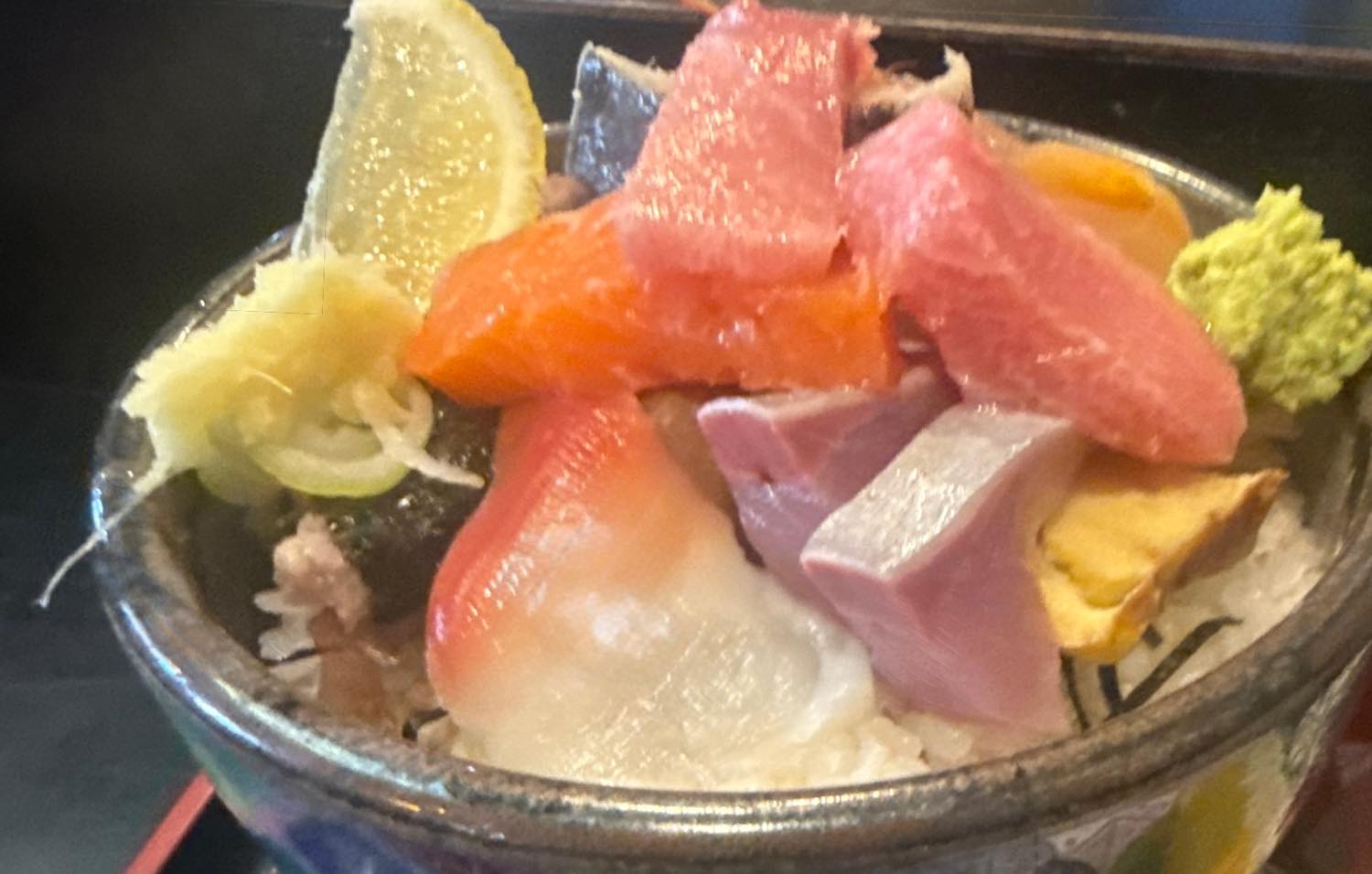 まぐろ重定食(揚げ物、ミニ麺付):1,200円