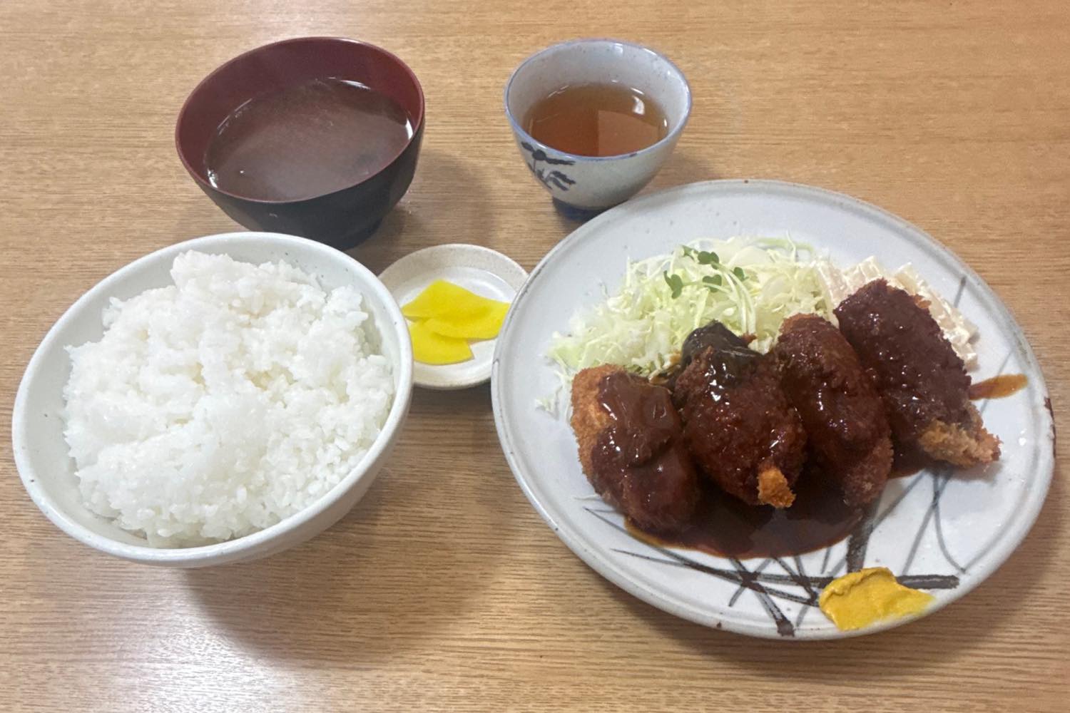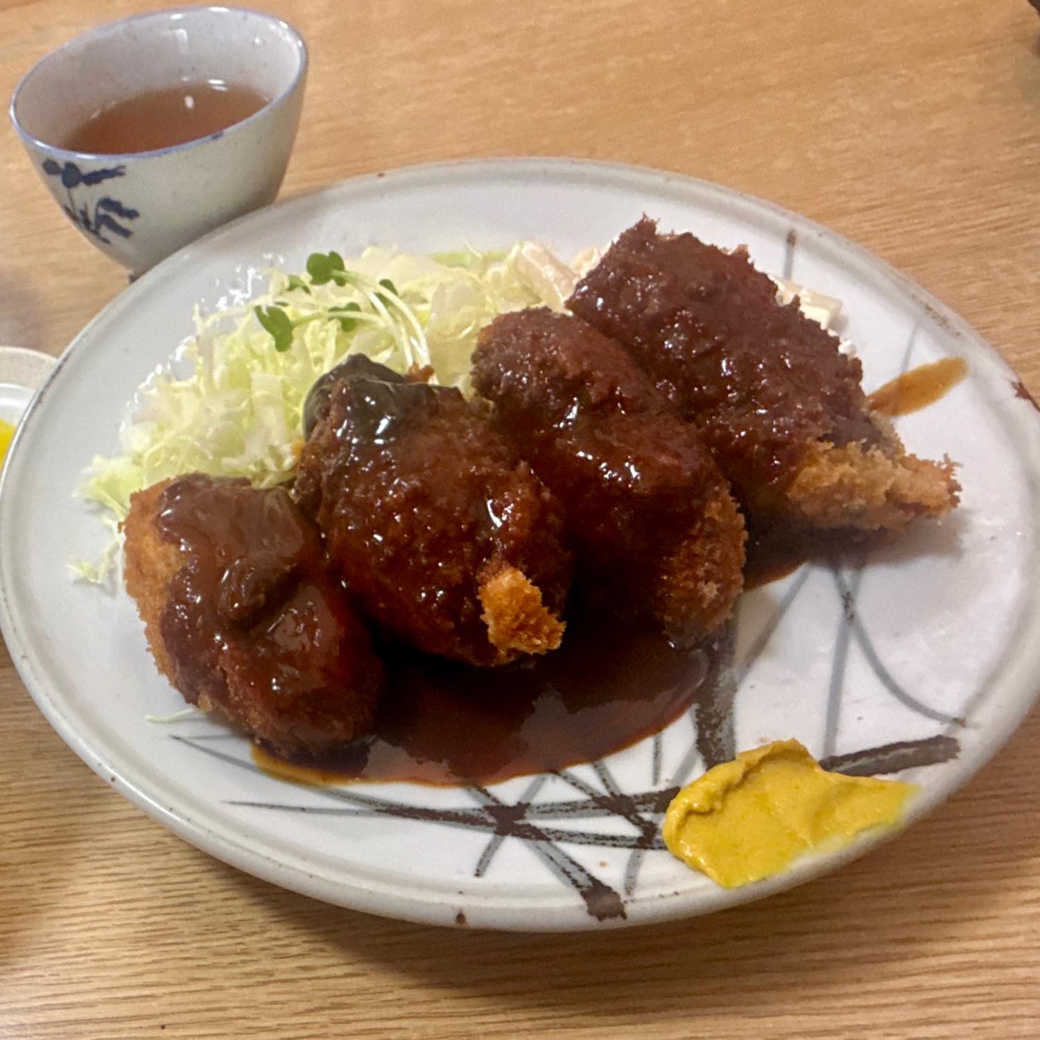 味噌ソースの「カキフライ」は全国的には珍しいんですかね?みどりやさんの味噌ソースは甘過ぎず辛過ぎず…。カキフライにも相性バッチリです!