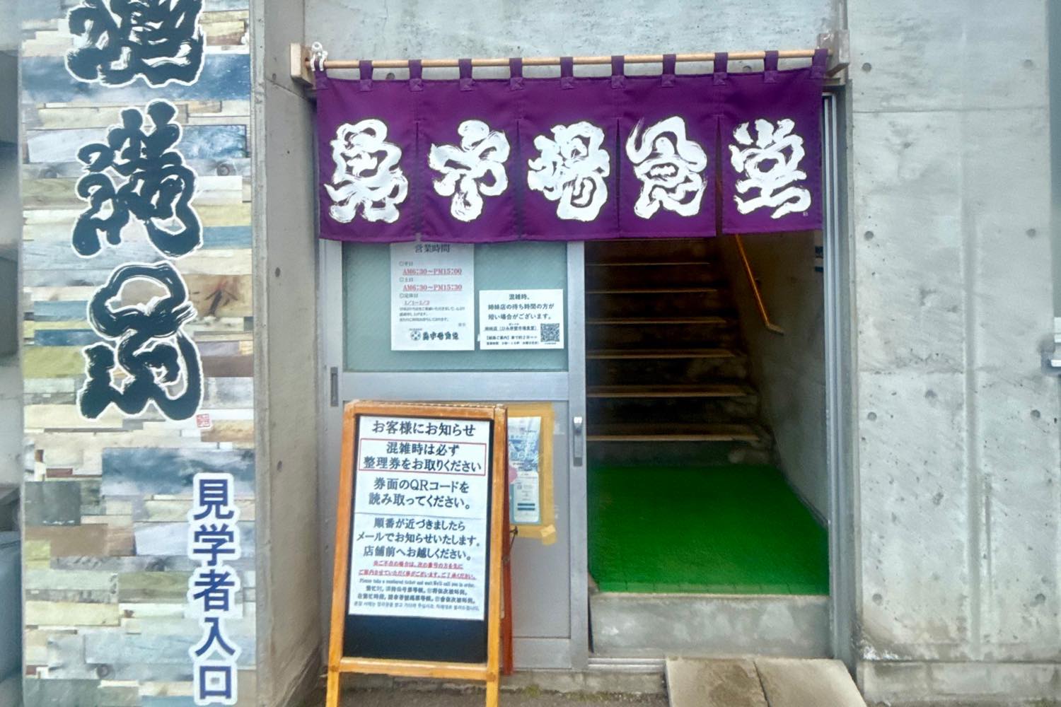 市場の見学者入口と書かれたところを入ると階段がありますので、2階に上がります。